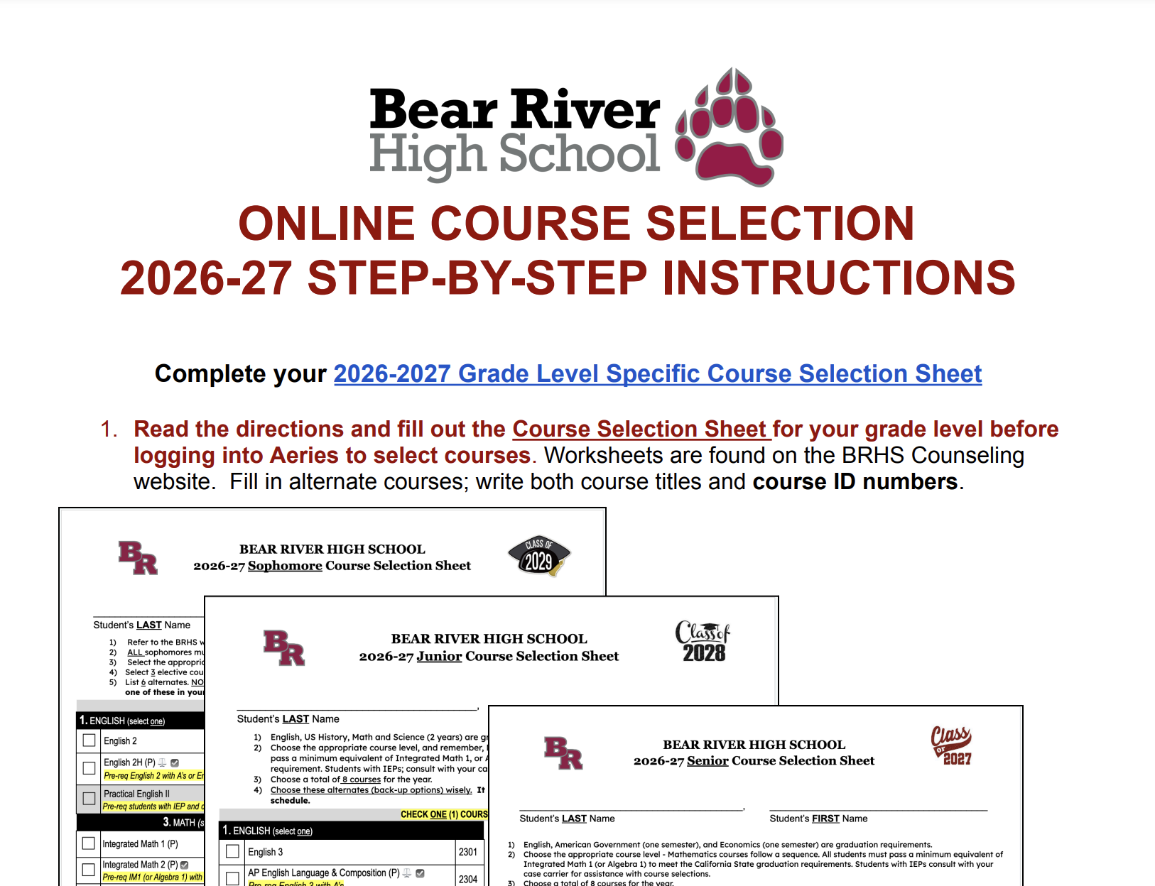 Enter course requests, online via Aeries, January 23rd-February 6th, 2025![]()